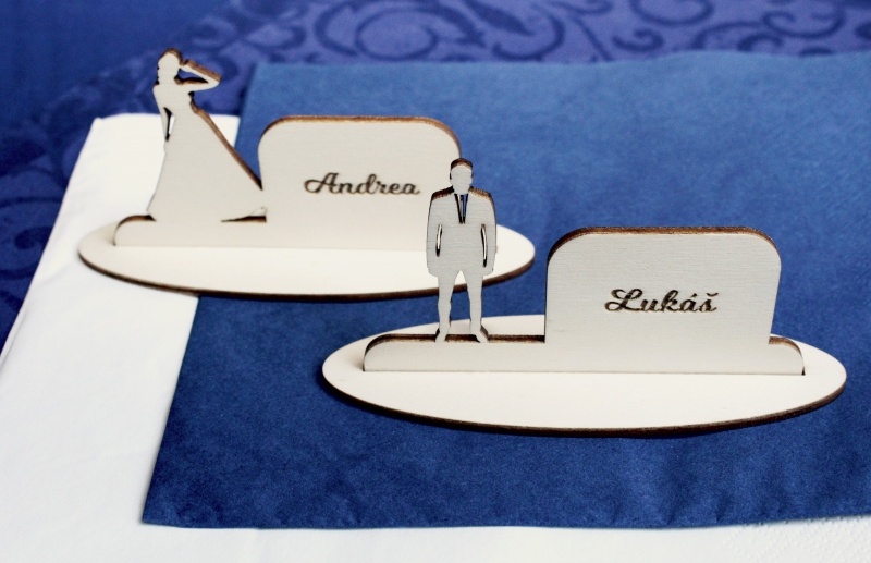 Svadobné menovky s vlastným textom, možno ako vypísať mená hostí, tak napr. len ženích, nevesta, svedok pod.