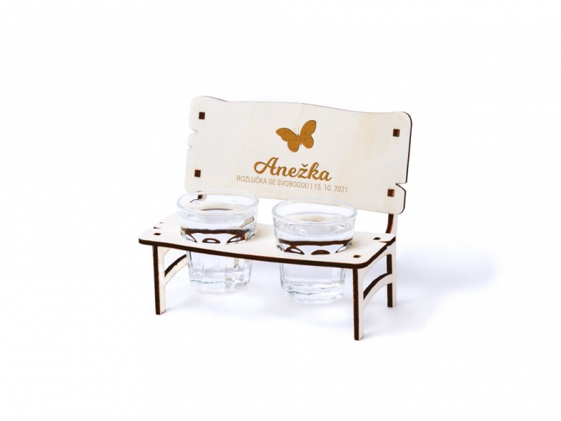 Drevená lavička s gravírovaním je originálnym doplnkom na rozlúčku so slobodou.