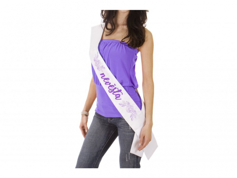 Môžete si zvoliť farbu šerpy, na výber je biela, zlatá, fialová, ružová, fuchsiová a lososová.