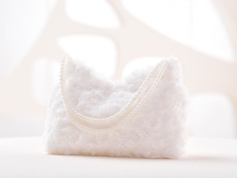 Svadobná kabelka s perlovým uchom je vyrobená zo saténu.