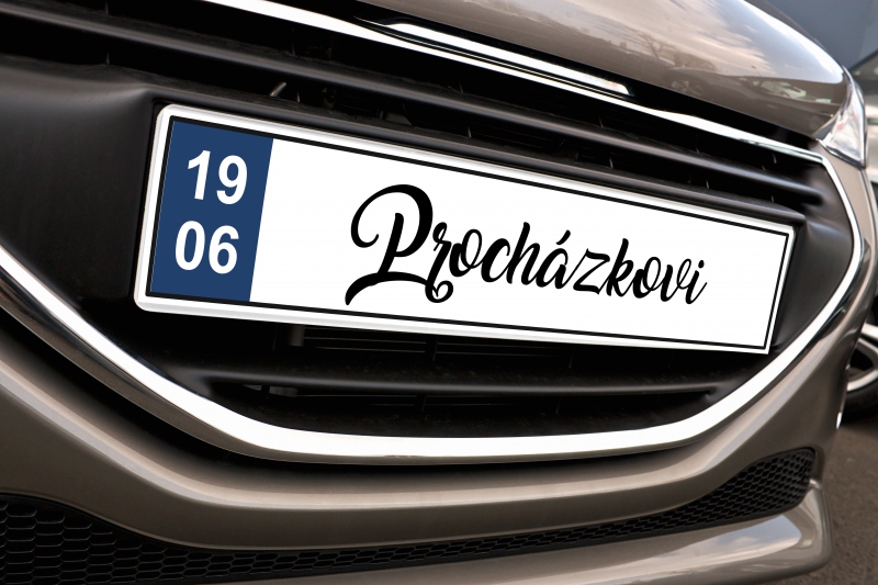 Kartónová ŠPZ na svadobné auto. Veľkosť 50 x 11,5 cm.