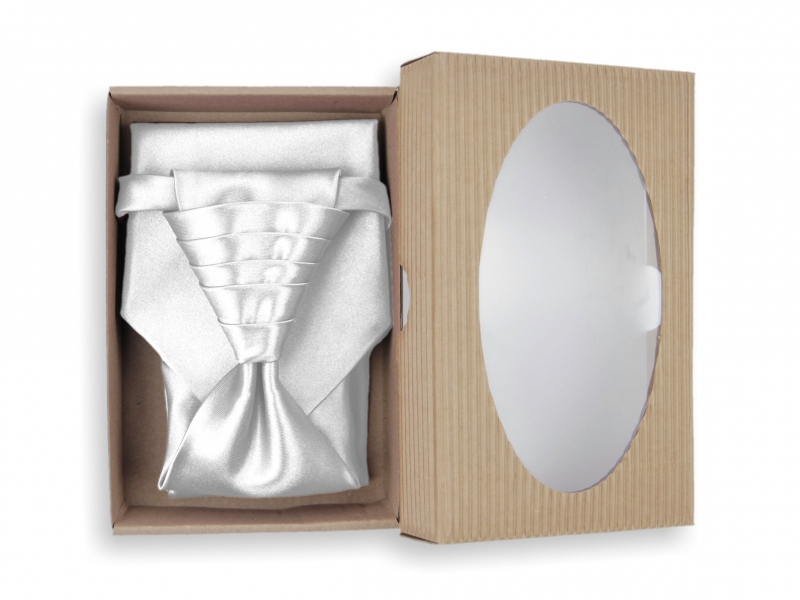 Pánska kravata REGATA je vyrobená z lesklého saténového materiálu. Jednofarebná regata má krásny lesklý povrch a dobre vyniká v košeliach jednofarebných, s prúžkom, kostičkou či iných so tkaným vzorom. Svadobná regata má už předvázaný elegantne skladaný uzol. Regata pre pánov je ušitá so sťahovacou čiernou alebo bielou gumou a nemusia sa viazať. Obvod gumy je voliteľný posunovačom do 45 cm. Regata na gumičku je určená predovšetkým pre svadobnú a slávnostnú spoločenskú príležitosť. Jednofarebnú regatu balíme do darčekovej krabičky z prírodnej mikrovlnej lepenky, ktorá má oválny priehľad vo veku.