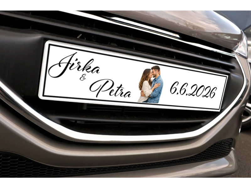 Svadobná ŠPZ s fotkou je malý detail s veľkým efektom. Krásne doplní svadobné auto, výborne vynikne na fotografiách a po svadbe vám zostane ako originálna pamiatka na váš výnimočný deň.