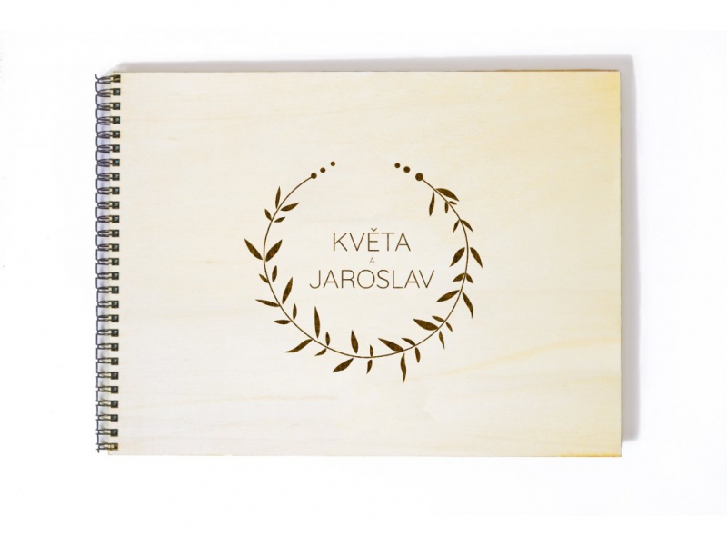 Materiál: topoľ, vnútri 20 listov fotokartonu v čiernej farbe, kovová väzba