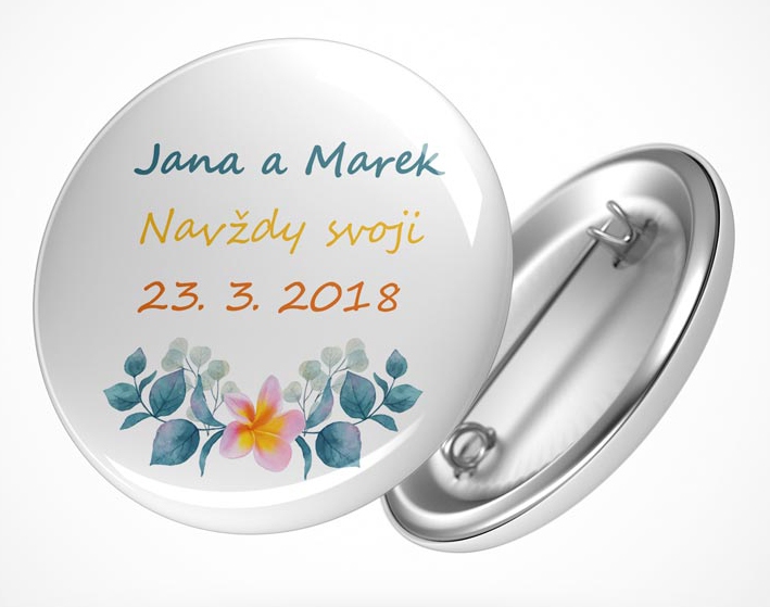 Moderné poňatie svadobných výväzkoch - to sú okrúhle placky. Na placku umiestnime vaše mená a dátum svadby. Vybrať si môžete z dvoch veľkostí placiek - 25mm a 37mm.