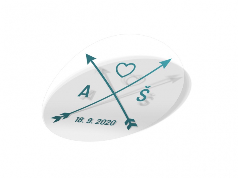 Priehľadné svadobné samolepky s vašimi menami a dátumom svadby, ktoré môžete použiť napríklad na darčeky pre svadobčanov v podobe fliaš slivovice či vína. Cena za 1 ks.
